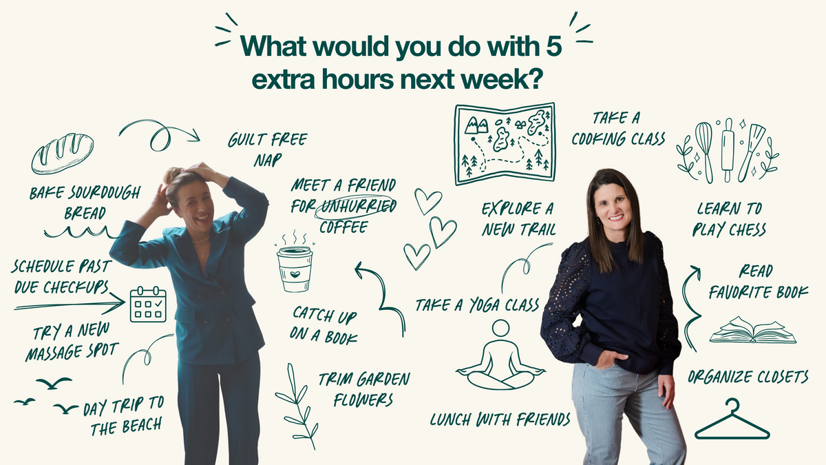 In just 2 minutes, you will find out how many hours you’re losing each week, and get simple action steps to reclaim 5 hours right away.